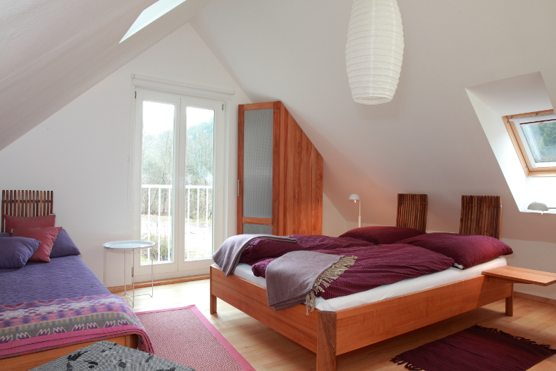 Dans la chambre à coucher séparée, un lit double et un lit simple avec matelas mousse attendent les paisibles rêveurs.